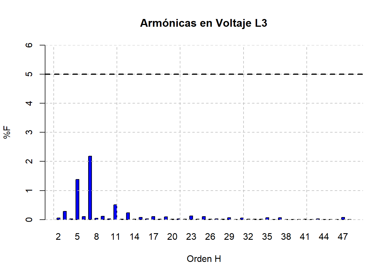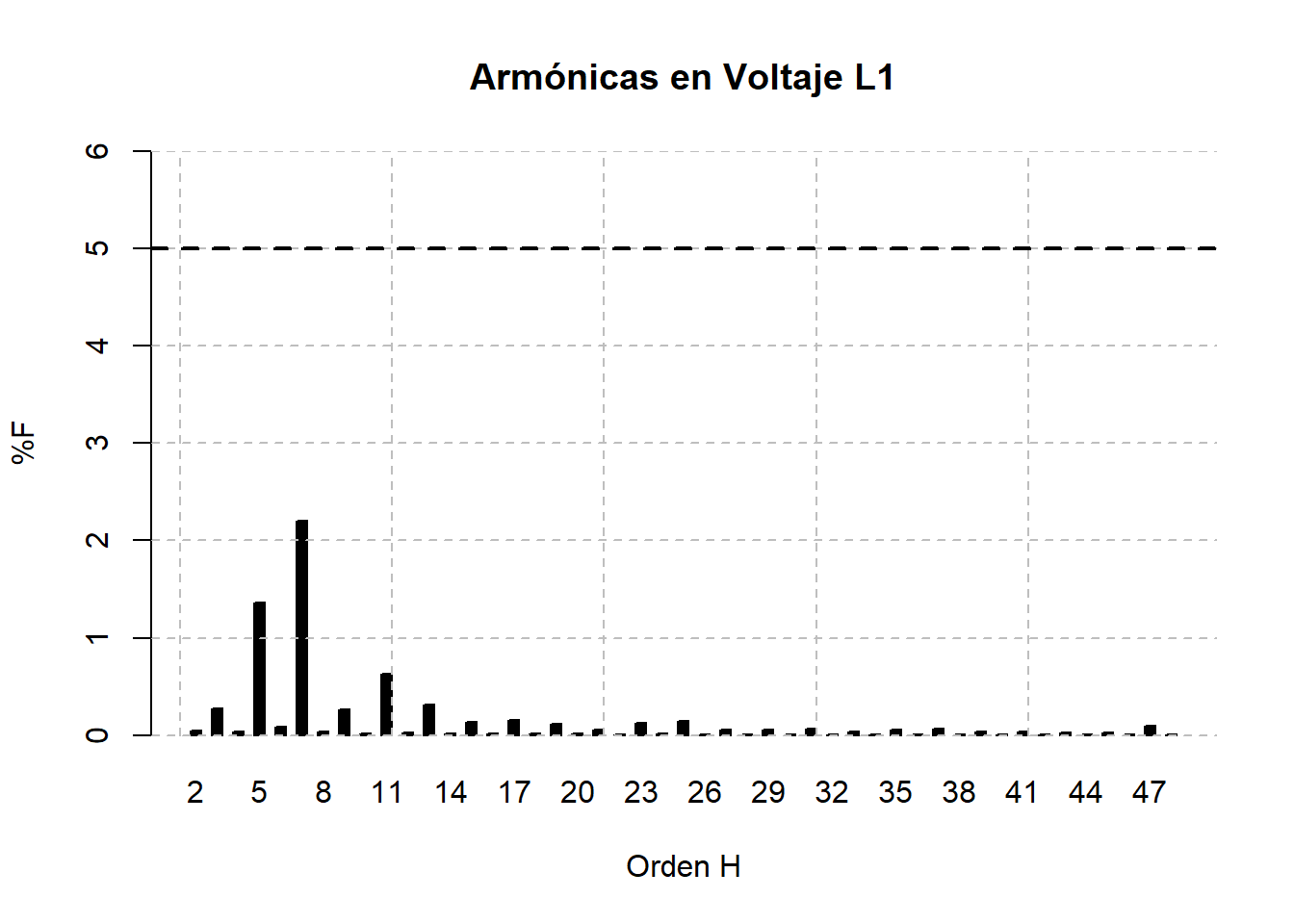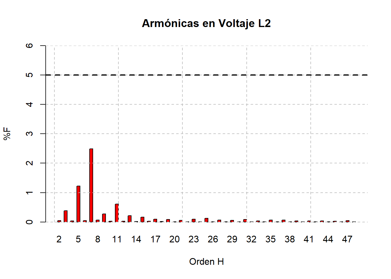La DATD medida fue de 7.7% (mes anterior 8.02%) siendo el límite de 8%. Y la armónica 5ª tiene un valor de 6.92% (mes anterior 7.13%) siendo el límite de 7%. Prácticamente se puede decir que están el en límite, pero esta condición ha permanecido en los últimos meses. Es recomendable reducir la 5ª armónica para no estar siempre en el límite requerido.